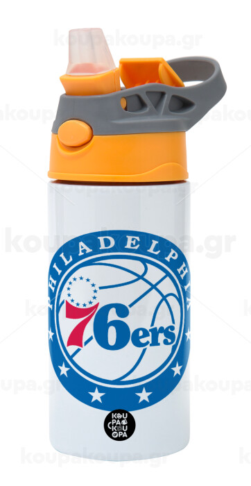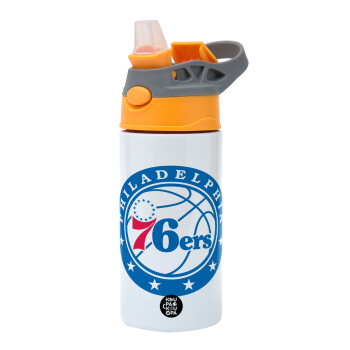 Philadelphia 76ers, Παιδικό παγούρι θερμό, ανοξείδωτο, με καλαμάκι ασφαλείας, Πορτοκαλί/Γκρι (360ml) BPA-FREE