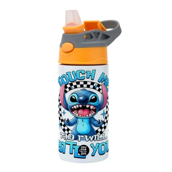 Stitch Touch Me And I Will Bite You, Παιδικό παγούρι θερμό, ανοξείδωτο, με καλαμάκι ασφαλείας, Πορτοκαλί/Γκρι (360ml) BPA-FREE