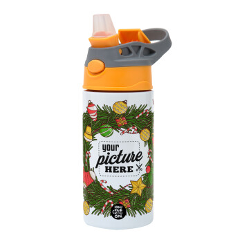 PHOTO Christmas twitch, Παιδικό παγούρι θερμό, ανοξείδωτο, με καλαμάκι ασφαλείας, Πορτοκαλί/Γκρι (360ml) BPA-FREE