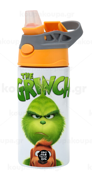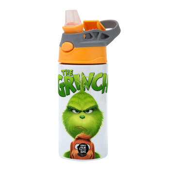 mr grinch, Παιδικό παγούρι θερμό, ανοξείδωτο, με καλαμάκι ασφαλείας, Πορτοκαλί/Γκρι (360ml) BPA-FREE