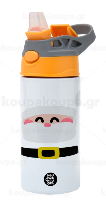Simple Santa, Παιδικό παγούρι θερμό, ανοξείδωτο, με καλαμάκι ασφαλείας, Πορτοκαλί/Γκρι (360ml) BPA-FREE