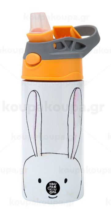 Ο λαγός του πάσχα, Παιδικό παγούρι θερμό, ανοξείδωτο, με καλαμάκι ασφαλείας, Πορτοκαλί/Γκρι (360ml) BPA-FREE