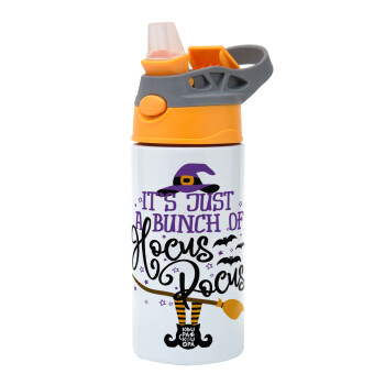 It's just a bunch of hocus pocus - halloween, Παιδικό παγούρι θερμό, ανοξείδωτο, με καλαμάκι ασφαλείας, Πορτοκαλί/Γκρι (360ml) BPA-FREE