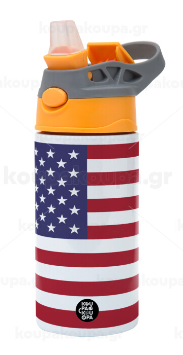 Σημαία Αμερικής, Παιδικό παγούρι θερμό, ανοξείδωτο, με καλαμάκι ασφαλείας, Πορτοκαλί/Γκρι (360ml) BPA-FREE