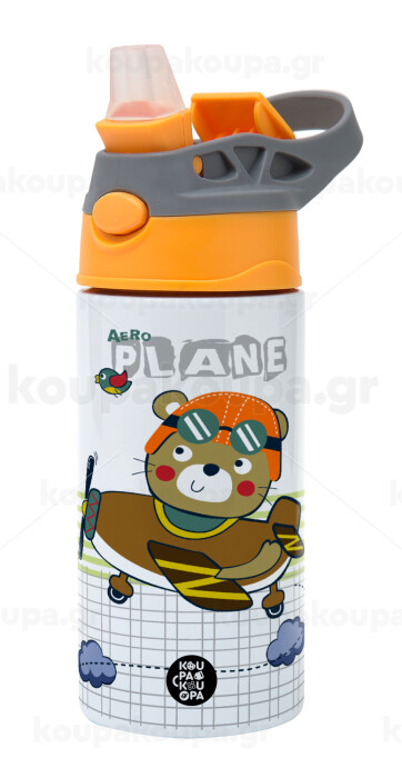 Ο μικρός αεροπόρος, Παιδικό παγούρι θερμό, ανοξείδωτο, με καλαμάκι ασφαλείας, Πορτοκαλί/Γκρι (360ml) BPA-FREE