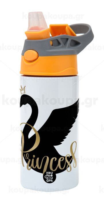 Swan Princess, Παιδικό παγούρι θερμό, ανοξείδωτο, με καλαμάκι ασφαλείας, Πορτοκαλί/Γκρι (360ml) BPA-FREE