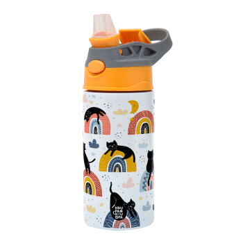 Γατούλες, Παιδικό παγούρι θερμό, ανοξείδωτο, με καλαμάκι ασφαλείας, Πορτοκαλί/Γκρι (360ml) BPA-FREE