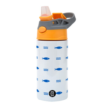 Ψαράκια, Παιδικό παγούρι θερμό, ανοξείδωτο, με καλαμάκι ασφαλείας, Πορτοκαλί/Γκρι (360ml) BPA-FREE