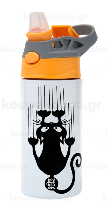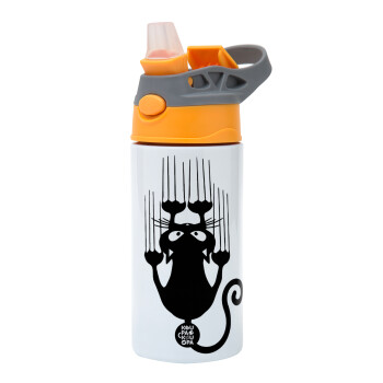Cat scratching, Παιδικό παγούρι θερμό, ανοξείδωτο, με καλαμάκι ασφαλείας, Πορτοκαλί/Γκρι (360ml) BPA-FREE