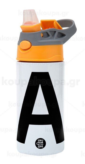 Μονόγραμμα , Παιδικό παγούρι θερμό, ανοξείδωτο, με καλαμάκι ασφαλείας, Πορτοκαλί/Γκρι (360ml) BPA-FREE