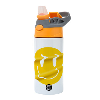 Smile avatar distrorted, Παιδικό παγούρι θερμό, ανοξείδωτο, με καλαμάκι ασφαλείας, Πορτοκαλί/Γκρι (360ml) BPA-FREE