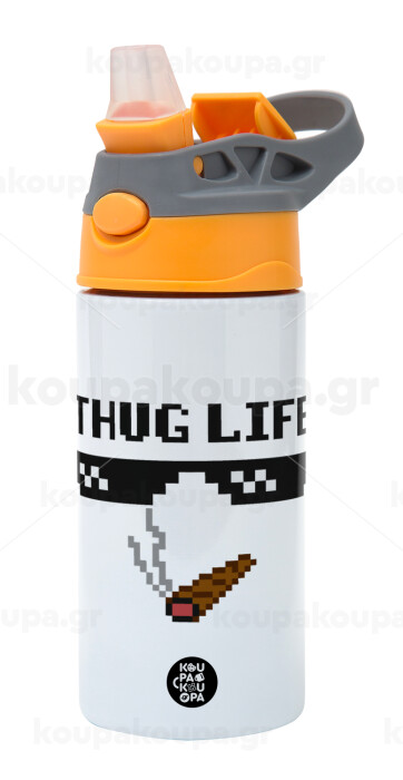 thug life, Παιδικό παγούρι θερμό, ανοξείδωτο, με καλαμάκι ασφαλείας, Πορτοκαλί/Γκρι (360ml) BPA-FREE
