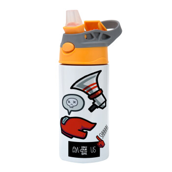 Among US Shhhh!!!, Παιδικό παγούρι θερμό, ανοξείδωτο, με καλαμάκι ασφαλείας, Πορτοκαλί/Γκρι (360ml) BPA-FREE