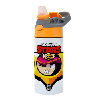 Brawl Stars Fang, Παιδικό παγούρι θερμό, ανοξείδωτο, με καλαμάκι ασφαλείας, Πορτοκαλί/Γκρι (360ml) BPA-FREE