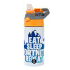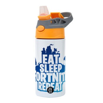 Eat Sleep Fortnite Repeat, Παιδικό παγούρι θερμό, ανοξείδωτο, με καλαμάκι ασφαλείας, Πορτοκαλί/Γκρι (360ml) BPA-FREE