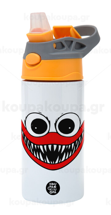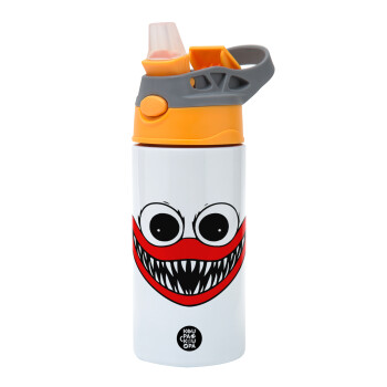Huggy wuggy, Παιδικό παγούρι θερμό, ανοξείδωτο, με καλαμάκι ασφαλείας, Πορτοκαλί/Γκρι (360ml) BPA-FREE