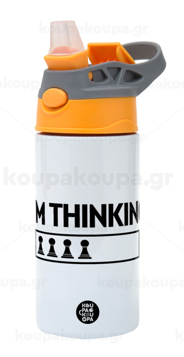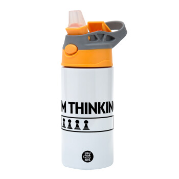 I'm thinking, Παιδικό παγούρι θερμό, ανοξείδωτο, με καλαμάκι ασφαλείας, Πορτοκαλί/Γκρι (360ml) BPA-FREE