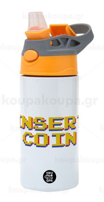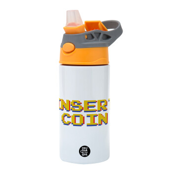 Insert coin!!!, Παιδικό παγούρι θερμό, ανοξείδωτο, με καλαμάκι ασφαλείας, Πορτοκαλί/Γκρι (360ml) BPA-FREE