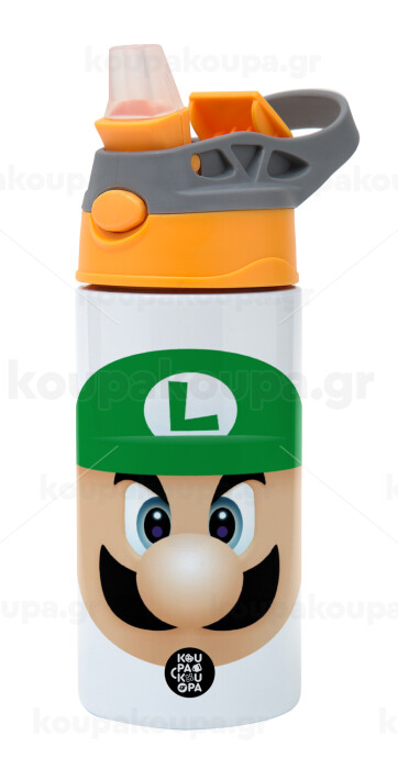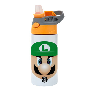 Luigi flat, Παιδικό παγούρι θερμό, ανοξείδωτο, με καλαμάκι ασφαλείας, Πορτοκαλί/Γκρι (360ml) BPA-FREE