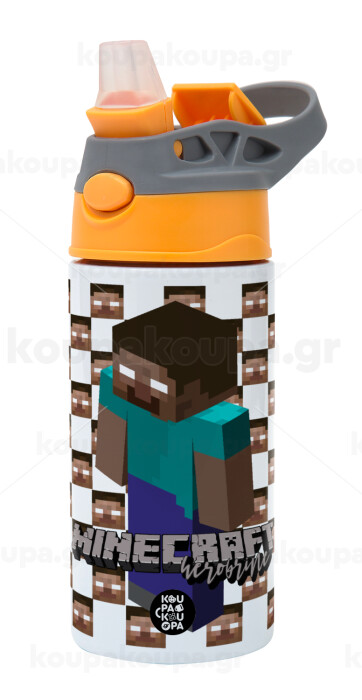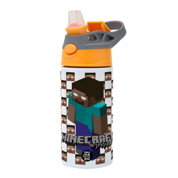 Minecraft herobrine, Παιδικό παγούρι θερμό, ανοξείδωτο, με καλαμάκι ασφαλείας, Πορτοκαλί/Γκρι (360ml) BPA-FREE