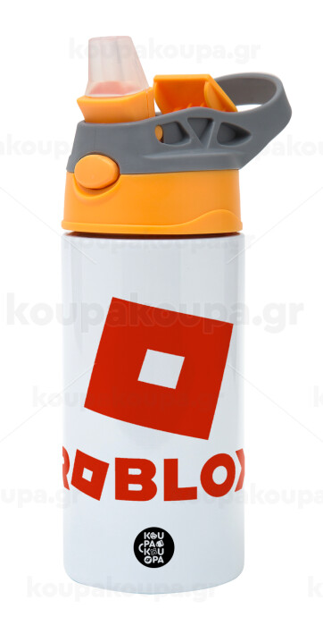 Roblox red, Παιδικό παγούρι θερμό, ανοξείδωτο, με καλαμάκι ασφαλείας, Πορτοκαλί/Γκρι (360ml) BPA-FREE