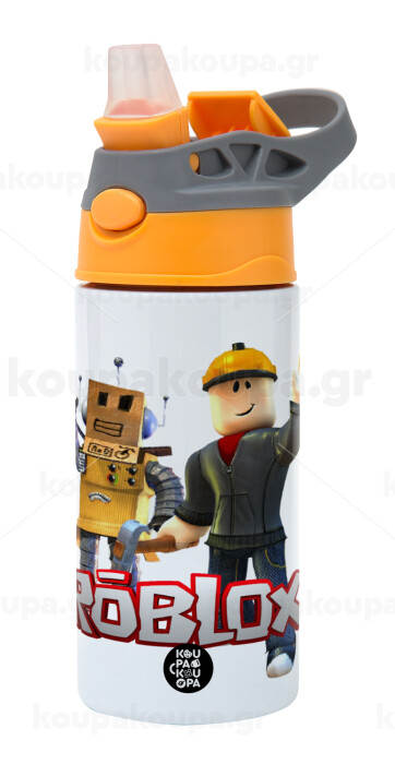 Roblox, Παιδικό παγούρι θερμό, ανοξείδωτο, με καλαμάκι ασφαλείας, Πορτοκαλί/Γκρι (360ml) BPA-FREE