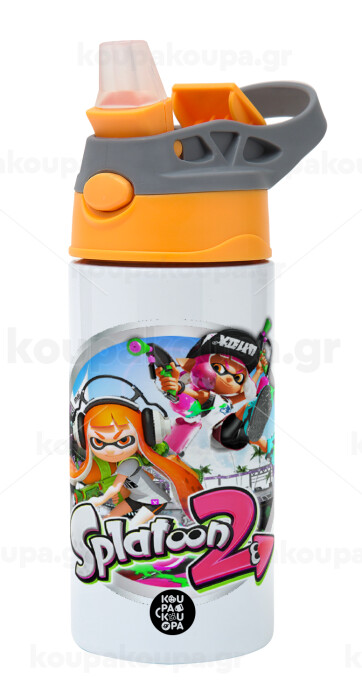 Splatoon 2, Παιδικό παγούρι θερμό, ανοξείδωτο, με καλαμάκι ασφαλείας, Πορτοκαλί/Γκρι (360ml) BPA-FREE