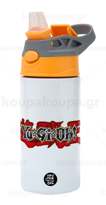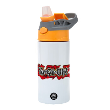 Yu-Gi-Oh, Παιδικό παγούρι θερμό, ανοξείδωτο, με καλαμάκι ασφαλείας, Πορτοκαλί/Γκρι (360ml) BPA-FREE