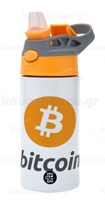 Bitcoin, Παιδικό παγούρι θερμό, ανοξείδωτο, με καλαμάκι ασφαλείας, Πορτοκαλί/Γκρι (360ml) BPA-FREE