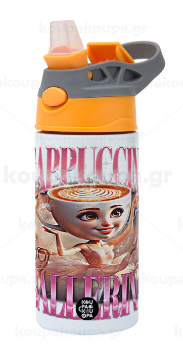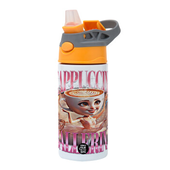 BALLERINA CAPUCHINA FUNK, Παιδικό παγούρι θερμό, ανοξείδωτο, με καλαμάκι ασφαλείας, Πορτοκαλί/Γκρι (360ml) BPA-FREE