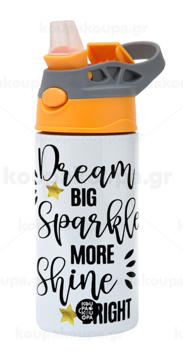 Dream big, Sparkle more, Shine bright, Παιδικό παγούρι θερμό, ανοξείδωτο, με καλαμάκι ασφαλείας, Πορτοκαλί/Γκρι (360ml) BPA-FREE