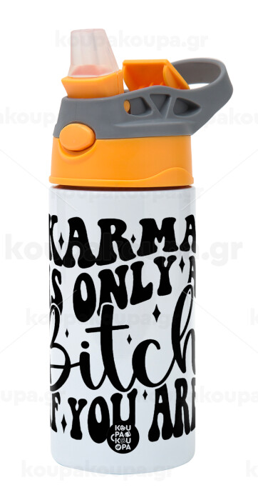 Karma is Only A Bitch if You Are, Παιδικό παγούρι θερμό, ανοξείδωτο, με καλαμάκι ασφαλείας, Πορτοκαλί/Γκρι (360ml) BPA-FREE