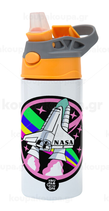 NASA pink, Παιδικό παγούρι θερμό, ανοξείδωτο, με καλαμάκι ασφαλείας, Πορτοκαλί/Γκρι (360ml) BPA-FREE