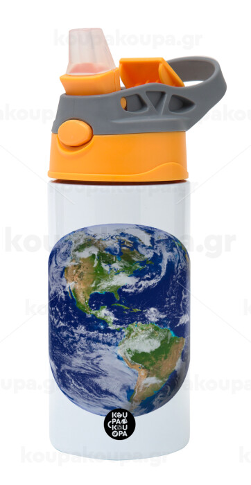 Planet Earth, Παιδικό παγούρι θερμό, ανοξείδωτο, με καλαμάκι ασφαλείας, Πορτοκαλί/Γκρι (360ml) BPA-FREE