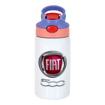 FIAT 500, Παιδικό παγούρι θερμό, ανοξείδωτο, με καλαμάκι ασφαλείας, ροζ/μωβ (350ml)