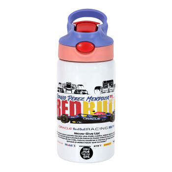 Sergio Perez - F1 Red Bull Racing, Παιδικό παγούρι θερμό, ανοξείδωτο, με καλαμάκι ασφαλείας, ροζ/μωβ (350ml)