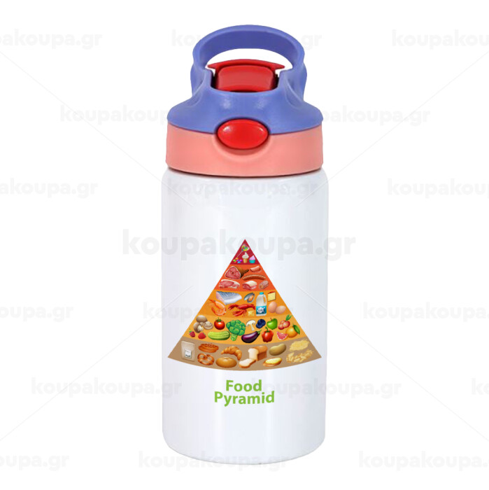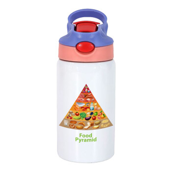 Διατροφική πυραμίδα, Παιδικό παγούρι θερμό, ανοξείδωτο, με καλαμάκι ασφαλείας, ροζ/μωβ (350ml)