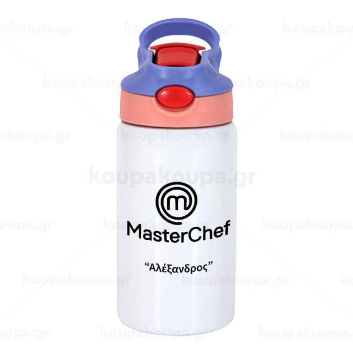 Master Chef, Παιδικό παγούρι θερμό, ανοξείδωτο, με καλαμάκι ασφαλείας, ροζ/μωβ (350ml)