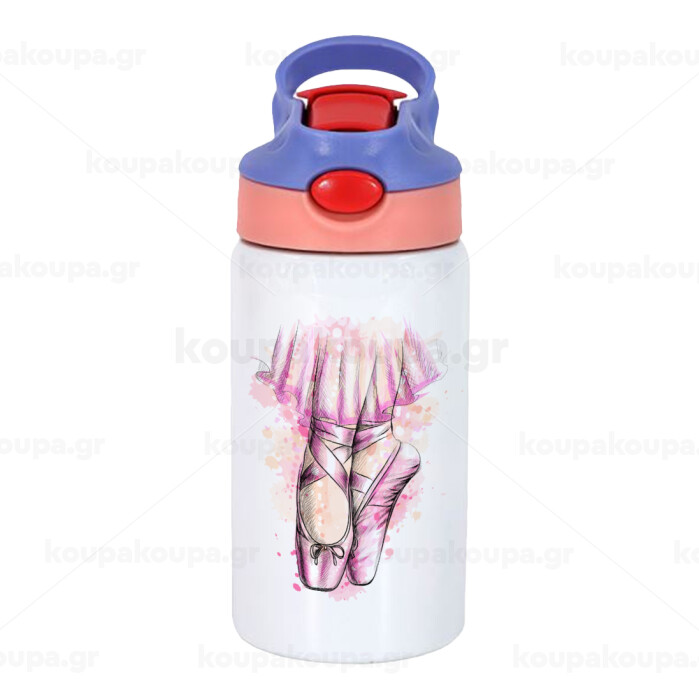 Ballerina shoes, Παιδικό παγούρι θερμό, ανοξείδωτο, με καλαμάκι ασφαλείας, ροζ/μωβ (350ml)