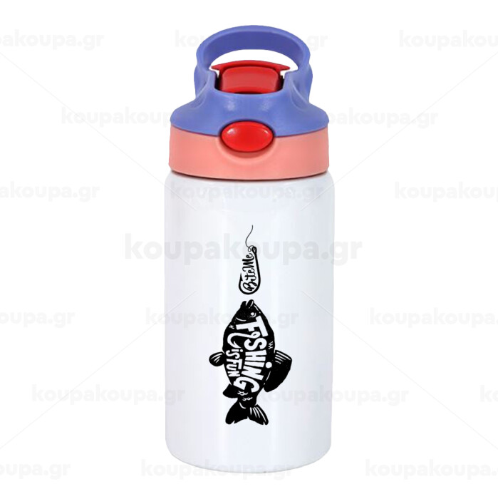 Fishing is fun, Παιδικό παγούρι θερμό, ανοξείδωτο, με καλαμάκι ασφαλείας, ροζ/μωβ (350ml)