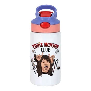 Eddie Munson, Hellfire CLub, Stranger Things, Παιδικό παγούρι θερμό, ανοξείδωτο, με καλαμάκι ασφαλείας, ροζ/μωβ (350ml)