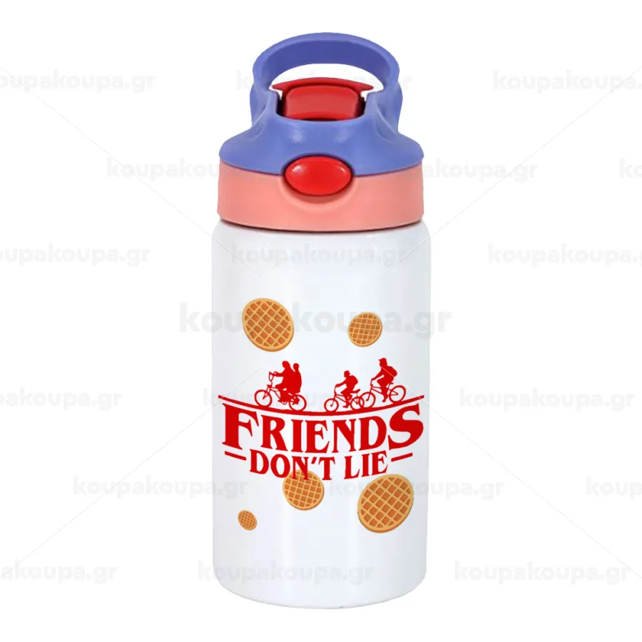 Friends Don't Lie, Stranger Things, Παιδικό παγούρι θερμό, ανοξείδωτο, με καλαμάκι ασφαλείας, ροζ/μωβ (350ml)