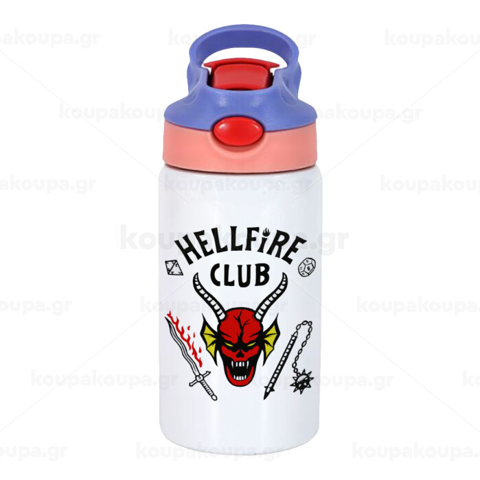 Hellfire CLub, Stranger Things, Παιδικό παγούρι θερμό, ανοξείδωτο, με καλαμάκι ασφαλείας, ροζ/μωβ (350ml)