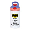 KEEP CALM & Call BATMAN, Παιδικό παγούρι θερμό, ανοξείδωτο, με καλαμάκι ασφαλείας, ροζ/μωβ (350ml)