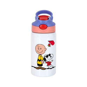 Παιδικό παγούρι θερμό, ανοξείδωτο, με καλαμάκι ασφαλείας, ροζ/μωβ (350ml) με θέμα Παιδικά