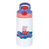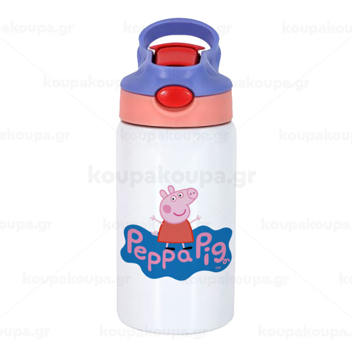 Πέππα το γουρουνάκι μπλε με όνομα, Παιδικό παγούρι θερμό, ανοξείδωτο, με καλαμάκι ασφαλείας, ροζ/μωβ (350ml)