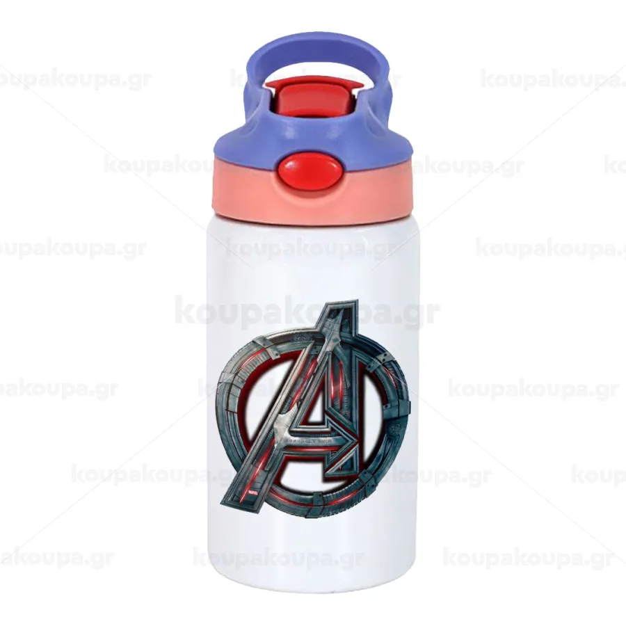 Avengers, Παιδικό παγούρι θερμό, ανοξείδωτο, με καλαμάκι ασφαλείας, ροζ/μωβ (350ml)