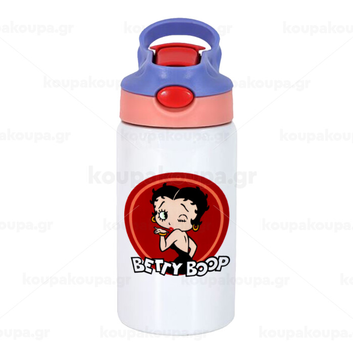 Betty Boop kiss, Παιδικό παγούρι θερμό, ανοξείδωτο, με καλαμάκι ασφαλείας, ροζ/μωβ (350ml)