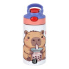 Capybara Bubble Tea, Παιδικό παγούρι θερμό, ανοξείδωτο, με καλαμάκι ασφαλείας, ροζ/μωβ (350ml)