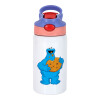 Cookie Monster, Παιδικό παγούρι θερμό, ανοξείδωτο, με καλαμάκι ασφαλείας, ροζ/μωβ (350ml)